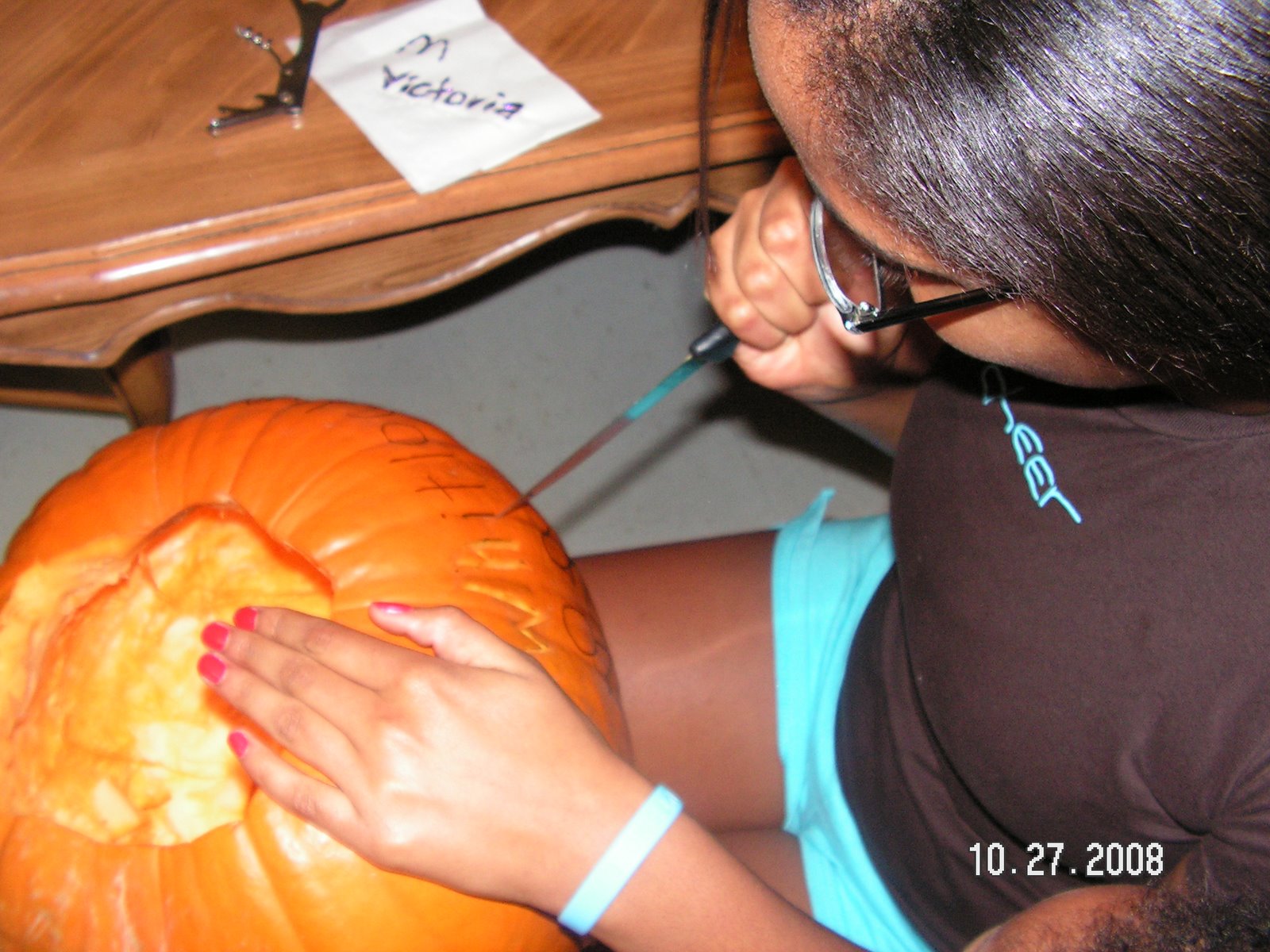 There is nothing like sticking your arm elbow deep in cold, wet, slimy pumpkin pulp and seeds. At least that’s Kobe’s idea of fun. Natalie was not thrilled with the unique tecture but she could not let Kobe and Tres have all the fun. Tori did the carving and Jordan…well, Jordan just wanted to know when it was going to be done.