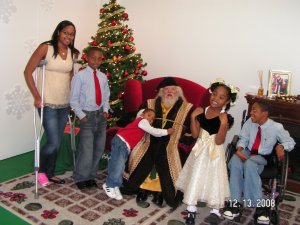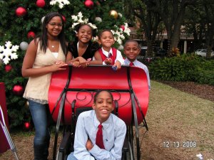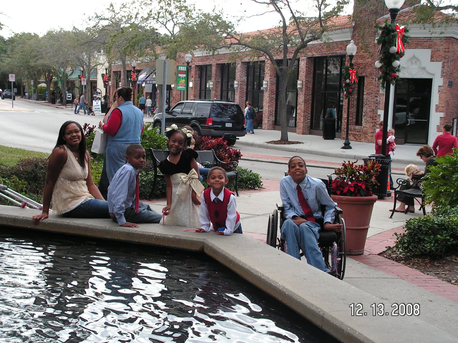 The kids and I went to one of our favorite places to take Chritmas pics for our cards this year. I can’t believe how good they did! No whining or fighting, it was great. Last year when we took our Christmas pics we forgot to put shoes on Kobe! (It’s our cover pic if you want to laugh along) So this year I was determined there would be no wardrobe malfunctions. The boys complained about the ties but I bribed them into going along with my theme with ice cream. We went and seen the same santa from last year. We don’t teach the kids that there is a Santa, we tell them that there are many people who exhibit the giving spirit of Saint Nicholas. Anyone can pretend to be santa when giving to others during the Christmas season. Last year Natalie came home from preschool and questioned why I had lied to her. “Mom, all my friends said there is a santa clause.” That was an unexpected conversation. LOL This year as we were heading to the park she asked me what our santa claus’s name is. “Santa Claus”, I replied. “No, his REAL name.” I quess she decided to believe me this year. LOL While the kids were eating ice cream people kept stopping to make comments about them. I do believe the owner should have paid us for advertising for her, business picked up as people observed the ice cream painted kids slurping on dripping ice cream cones. We had sooo much fun today.