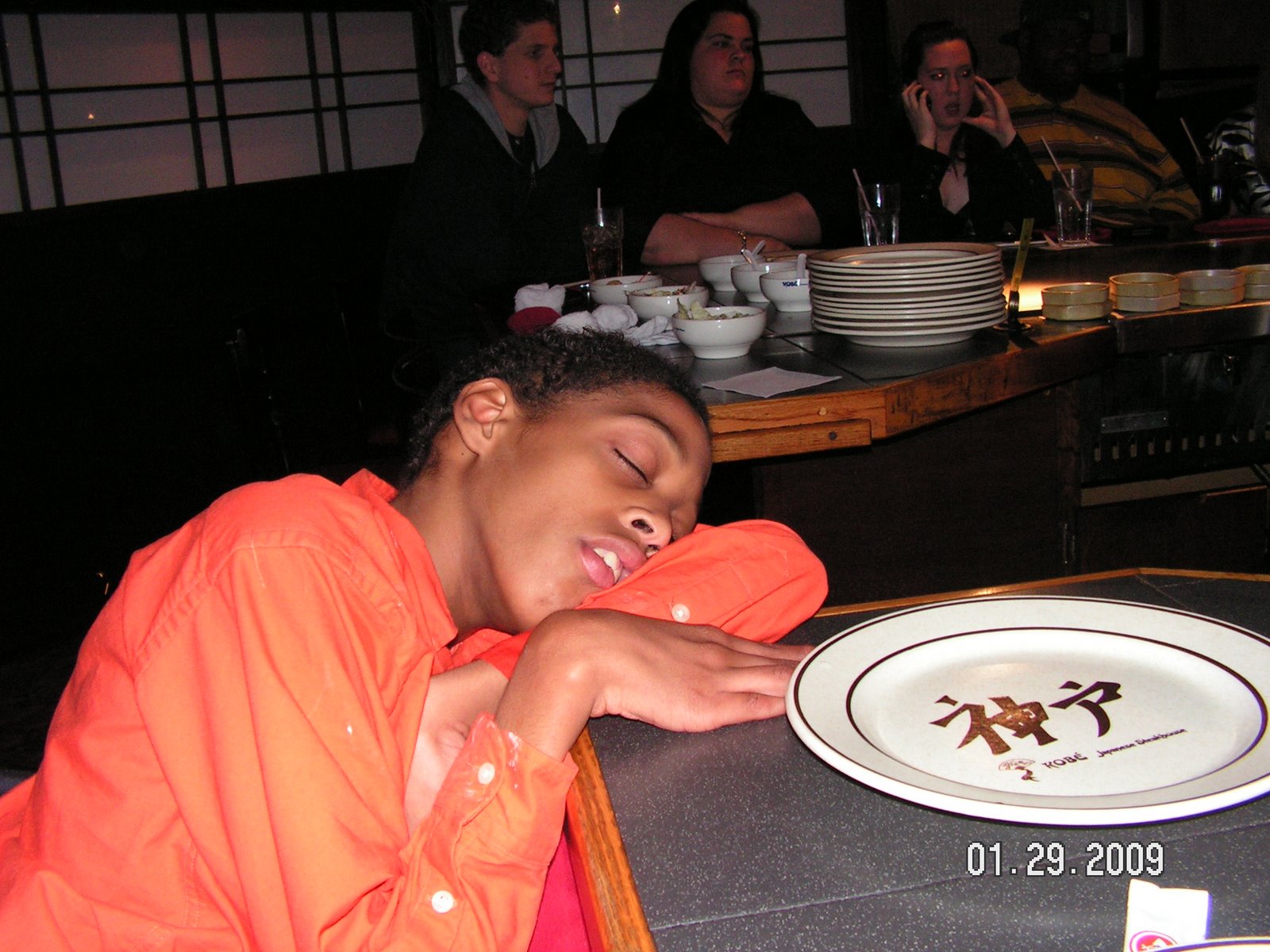 Keanna has gone to Kobe’s Japanese Steakhouse the last 16 birthdays. We decided to keep with tradition. No matter what state we move to there is a Kobe’s just waiting for us. At the Kobe’s in Hawaii we met a women who used to work at the Kobe’s in Kansas! The kids were a little nervous when the chef made a fire volcano out of the onions and threw shrimp tails onto their plates. Entertaining as it was, the most giggles came from watching food fly during the missed attempts at using chopsticks. Tres was obviously not that impressed he fell asleep right at the table! LOl Oh, the title means Happy Birthday in Japanese.