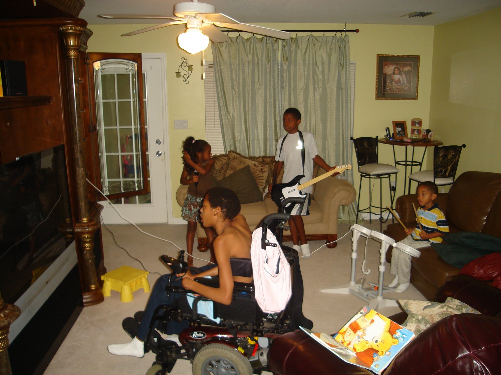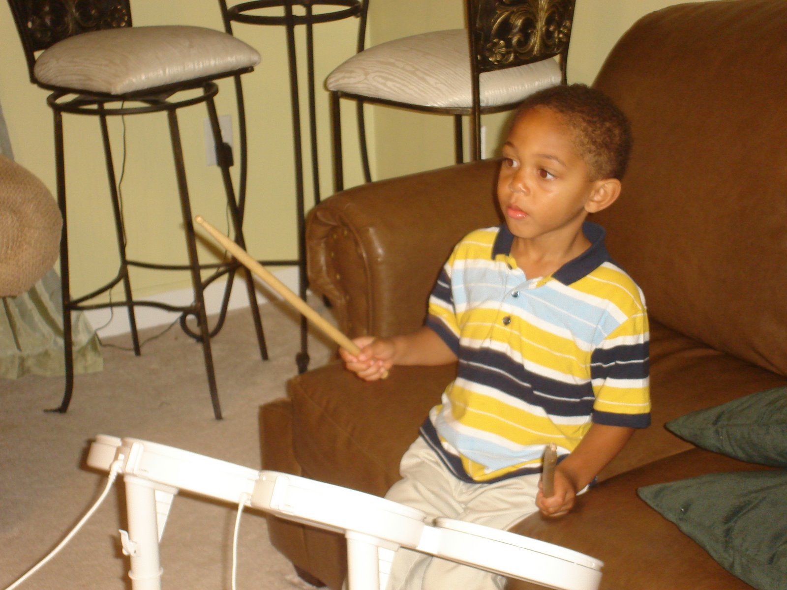 The tribe loves music. A favorite activity is the WII game Rock Band. I am amazed at how well they play together. Natalie or Tori usually sing, Jordan plays the guitar, Kobe or Tres play drums. Out of them all Kobe loves it the most. He has been asking for WII music since Christmas. His birthday is in July…hint hint LOL