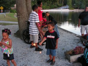For the first time this year Natalie and Kobe were able to enjoy the experience of firecrackers. We are not allowed to shoot them off on base so most of our Fourth of July’s have been spent watching the shows. Uncle Phil walked us all down to this lake near his home for some good old fashioned sparkly fun. We also did snakes, firecrackers, and fountains. The kids are talking about the fireworks they want for next year.