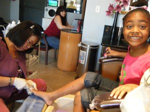 Cousin Tabby, Natalie and I went together to get our toes done. Every moment was a wonderful adventure for Natalie. It was cute when they used the pumice stone on her feet, we could tell she wanted to cry but she kept her pasted smile on and acted like it did not hurt. She took a full 30 minutes to decide on her toe color. “This is the best Mom!” Uh oh, what did I get started?