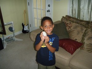 Kobe burst through the front door the other day so excited about something he had found outside. It was a magic egg. He immediately tried using its magic on Maurice and I.