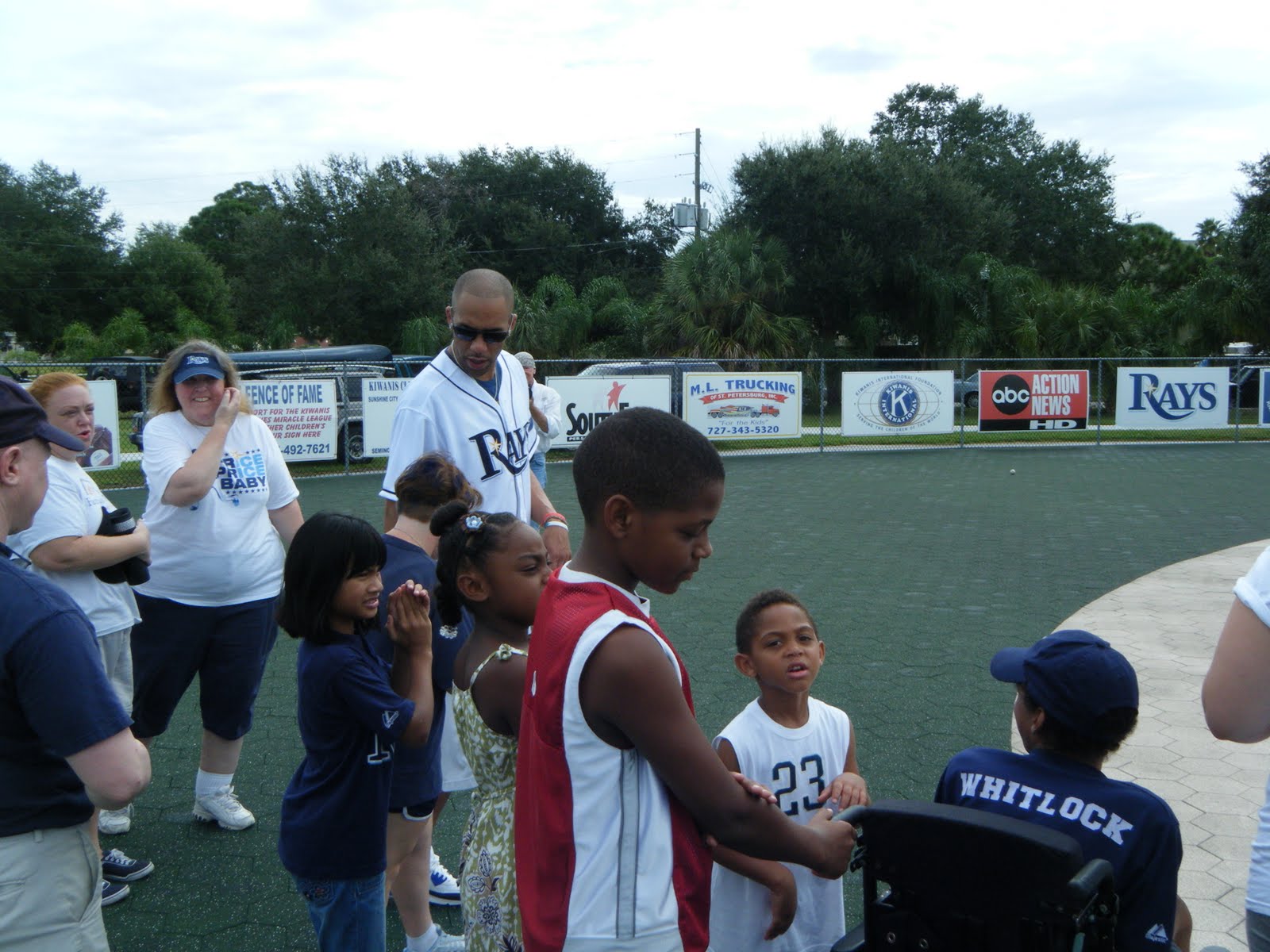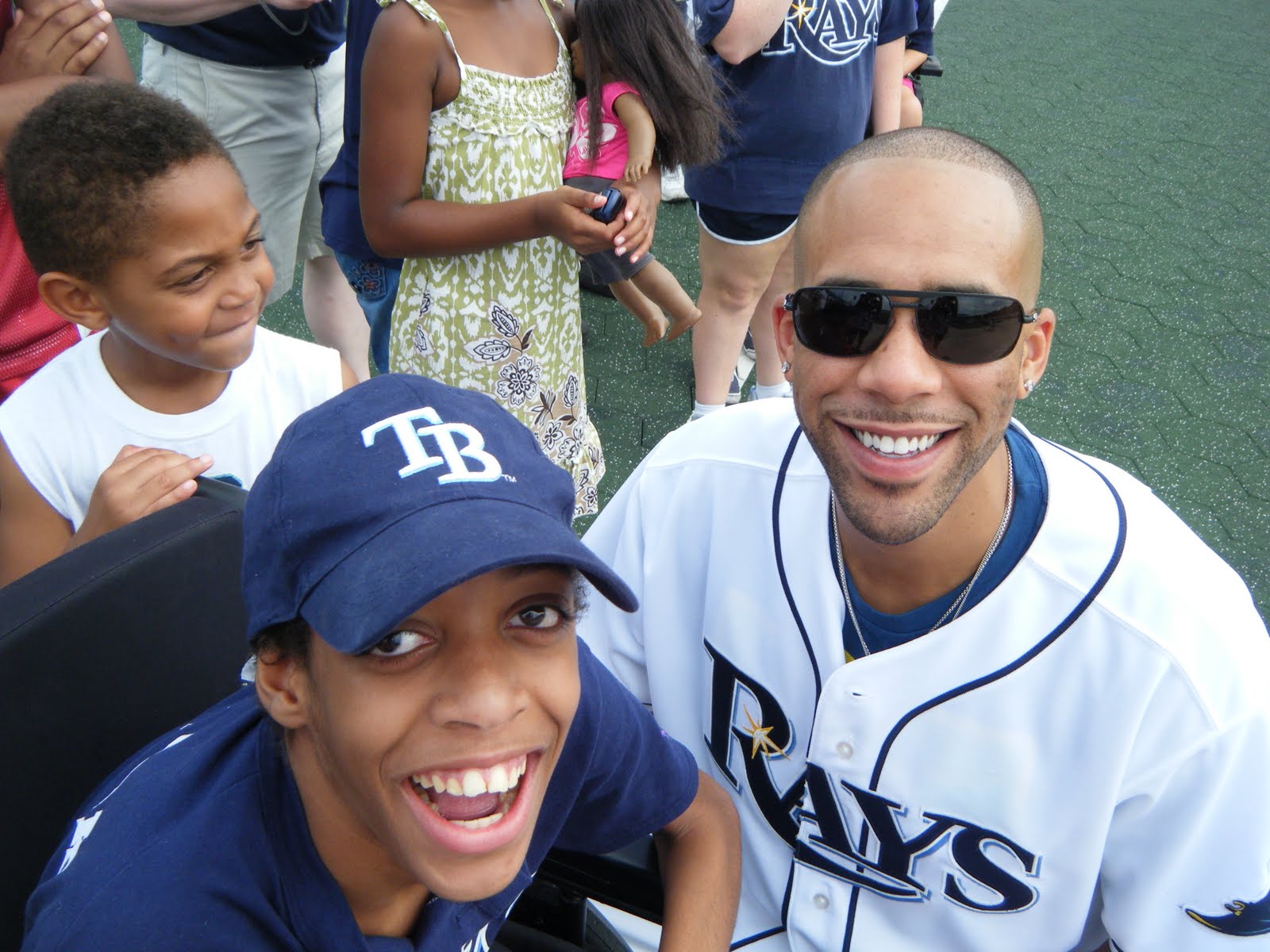 The Miracle League is a baseball team Tres plays on. Two of our sponsors are the Rays and Yankees. Today was the first day of the season and Tres was sooo excited. We had been told that David Price wanted to visit and see the team. Tres almost jumped out of his seat when the MLB star pitcher walked on the field. Mr. Price pitched to the kids for one inning of the game. Later he signed baseballs, hats and shirts for the kids and their siblings. Thanks Rays for making it the best Saturday ever for one Tres Whitlock.