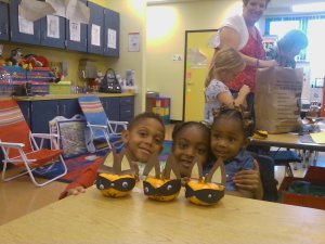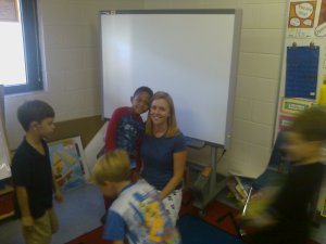 jammies? The kids school had it right when they held a fall festival with games, arts and crafts and pumpkin painting all in p.j.’s! So much fun and no stain worries. Tab and Journey accompanied us. The kids took their masked pumpkin creations very seriously. The bottom picure is of Kobe and his teacher Ms. Bell who was also Natalie’s kindergarten teacher.