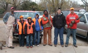 One Tate tradition is for all the guys to wake up early Thanksgiving morning and go hunting. Mind you we are talking about Kansas. You know its always freezing. Thanksgiving morning all the uncles and cousins come trooping in moms house. Jordan decides he wants to go. After layering him with about 3 pairs of pants and tops we help him zip into his coat. He looked like a weeble wobble toy. As he was walking out to the truck I got very nervous. Even though this was a family tradition MY child had never gone. Any talks we had ever had about guns basically ended in “Stay away from them!” The more I thought about him going out there the faster I started walking toward the door to stop him. Once I got outside I seen the guys all in a circle and Booker was standing there giving them a very serious safety briefing. As I stood and listened I was impressed with the amount of rules and structure that goes along with hunting. I was also assured that only the adults would be carrying rifles. As they pulled off I was still a little nervous but more assured of the process. I was happy to see the truck pull back up a few hours later.
