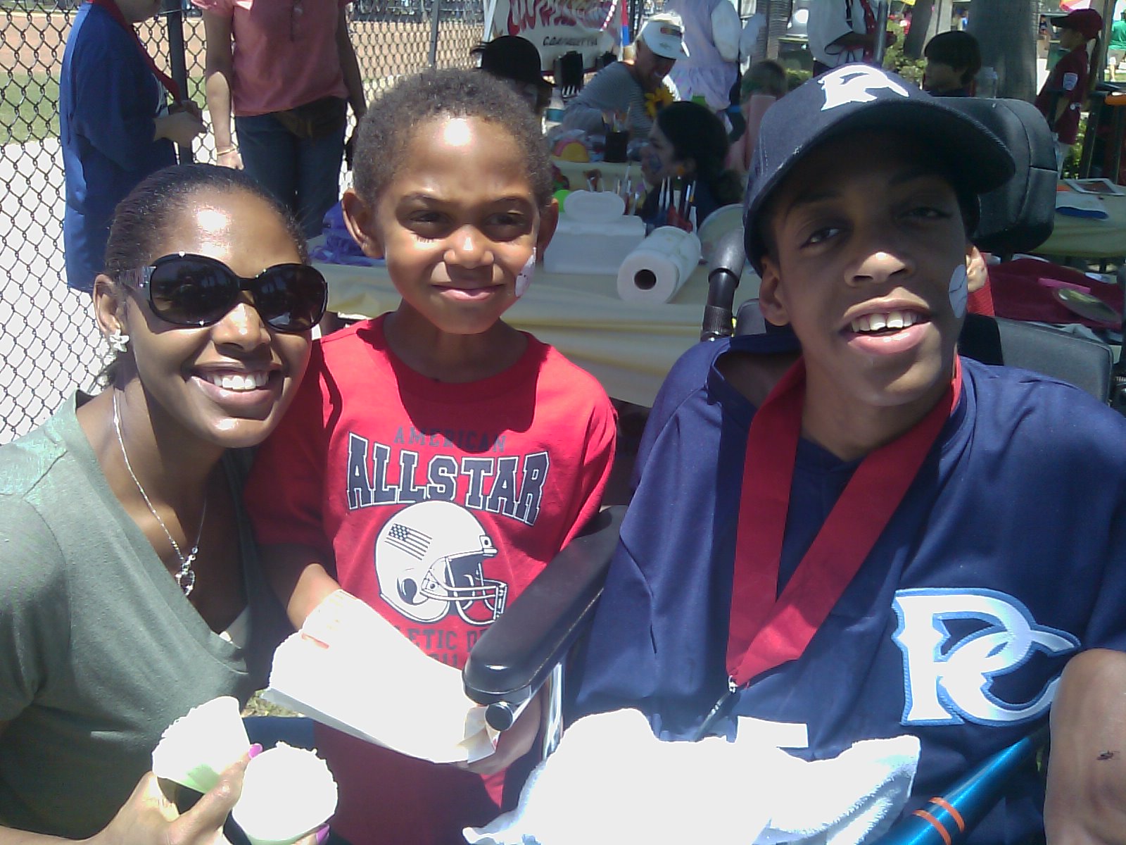 The weekend of Spring Break Tres Challenger baseball team had a tournament in Clearwater. Teams from all over our county came together to play. The atmosphere was so exciting with bounce houses, face painting, pop corn stands and snow cones. Tres just loves this team. Each child is paired with a partner who helps them make the plays for the game. They cheer each other on and it is such a positive experience. He grins and laughs through the whole game and loves all the high fives from his coach and team and “Go Tres Man!” hollers coming from the crowd. The best benefit for me is being around other parents who have a child with a disability and sharing ideas and resources. I am so grateful for the Challengers.