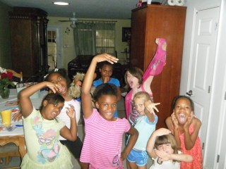 The weekend after Natalie’s birthday we had a sleepover with the friends she plays with in our neighborhood. We made pizza, took a late night walk along the bay and even went as a group to Walmart. It was quite funny seeing people’s faces as I walked in at 10:30 p.m. with my entourage. We needed more snacks and that was the only place still open! They partied hard and did not go to bed until….sigh…about 3:30 a.m. It will probably take until next year for me to be ready for the next slumber party.