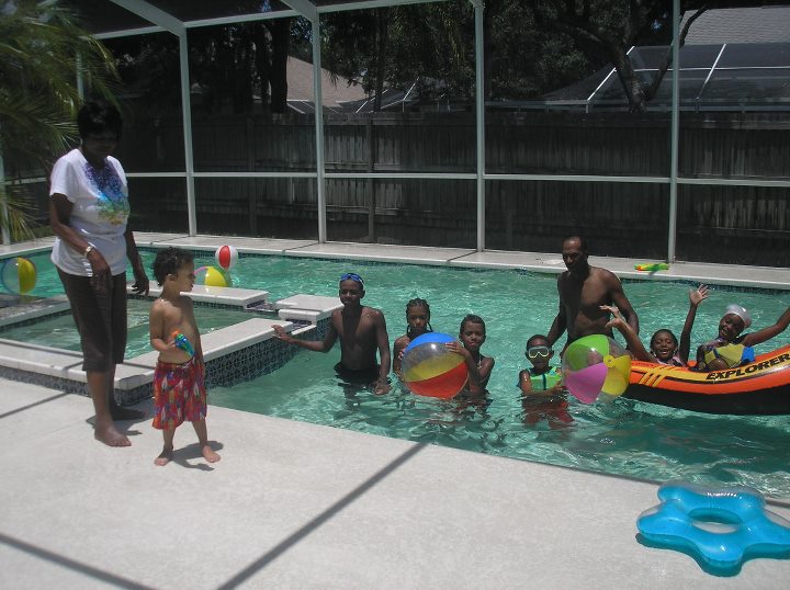 Kobe was so excited to have his cousin’s here for his birthday. He invited his best friend Jadyn’s family over and along w/ our family we had a big barbecue. The kids had a blast just hanging out in the pool all day. Maurice and I bought him a bike for his big day and he spent the evening of his birthday trying to learn how to ride. By the next day….he had it down. I just know those Wii balance games are helping him with his coordination and sequencing skills.