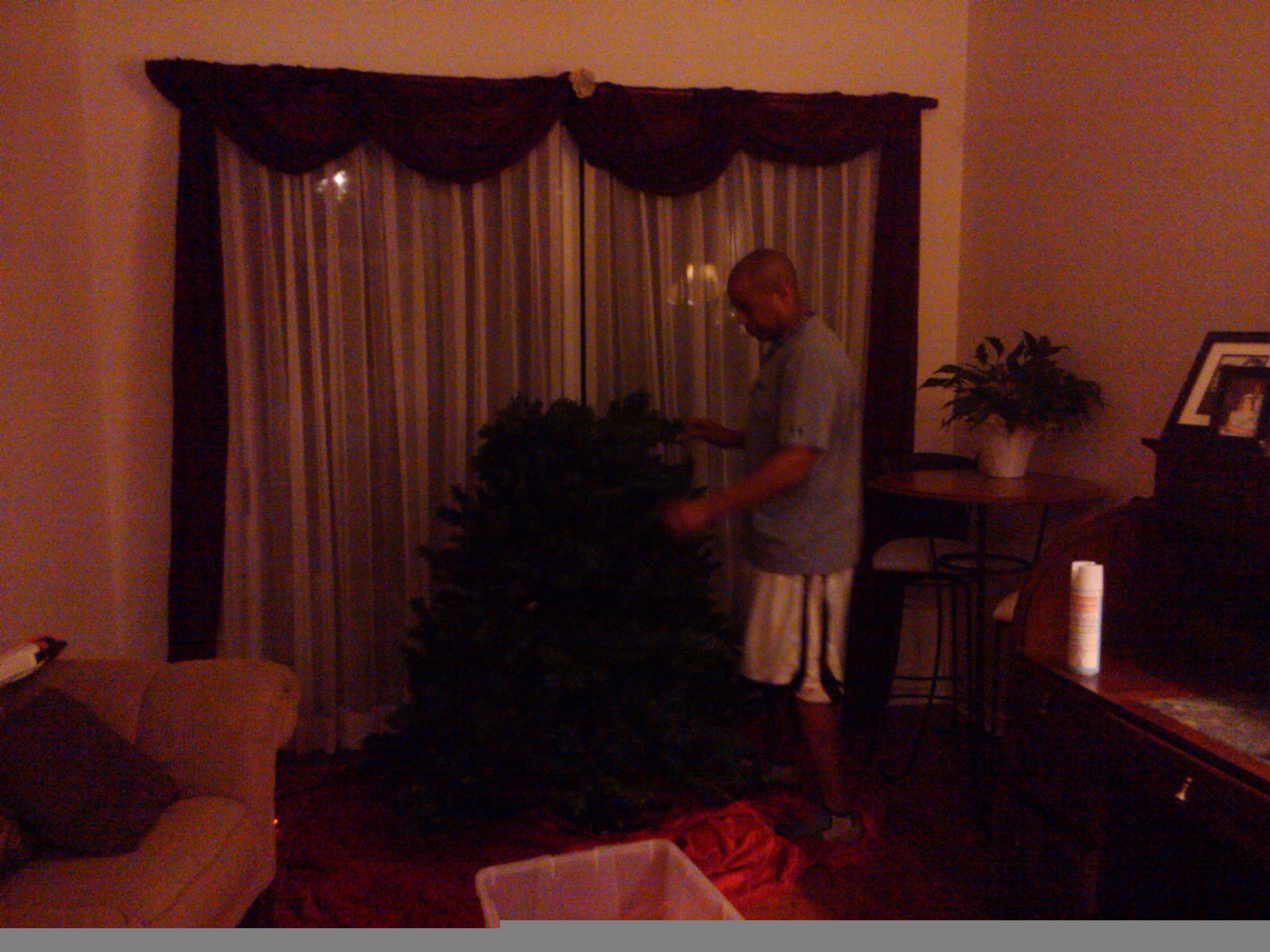 Saturday we dug out the Christmas decorations and decorated our little fern that sits outside the door as well as the Christmas Tree. Normally we have the tree up the weekend after […]