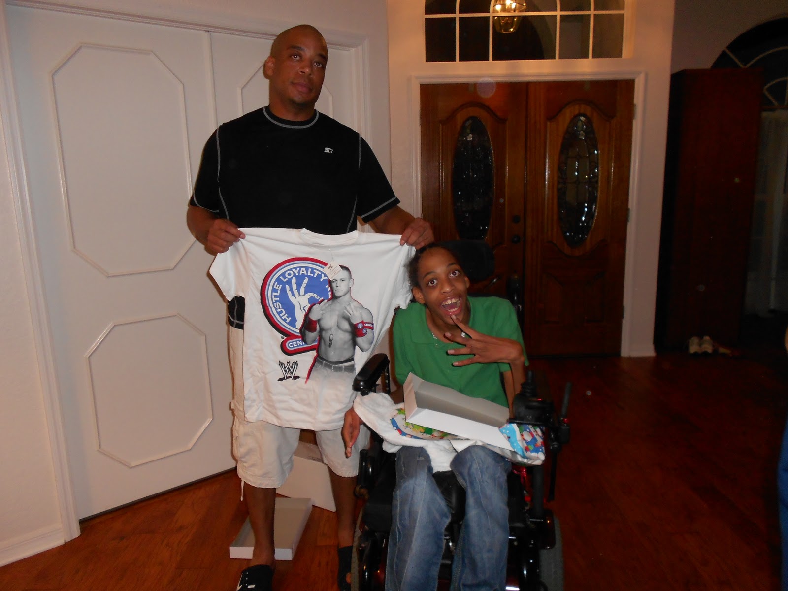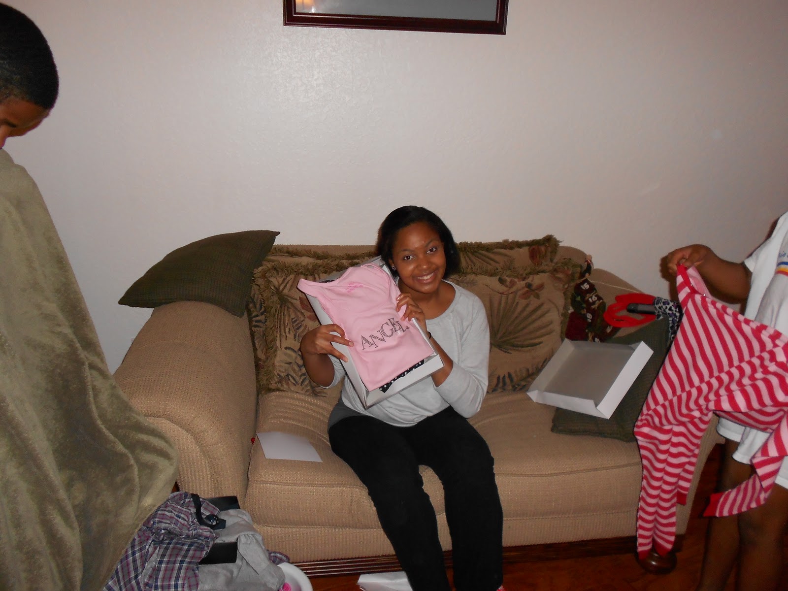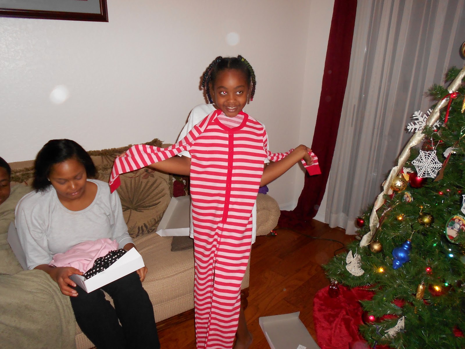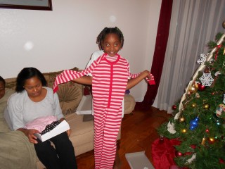 After Christmas Eve service we went to Buca De Beppo. We LOVE this restaurant. It is one of the rare places we can go to eat and 1. have left overs and 2. be in a loud enough environment that our kids voices just blend right in. Later after babysitting Tori met us back at the house. The kids were excited about getting to open up an early gift from Aunt Keanna…P.J.’s!