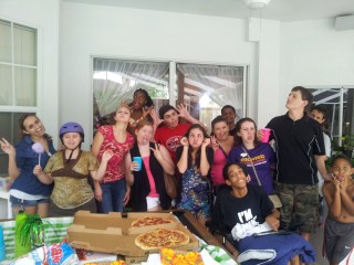 Tres second hospitalization for a pneumothorax hit him very hard emotionally and physically. He was tired, anxious and drained from 3 weeks of overwhelming obstacles. Normally he has this amazingly bright smile on his face and a “I can do anything” attitude. After he came home he was just not himself, which of course we all understood. We wanted to put a smile on his face so we called his friends over for a surprise party. It was just what the doctor ordered. I knew the social butterfly in him would not remain dormant once his friends started flowing threw the door. Happy Tres=Mission Accomplished.
