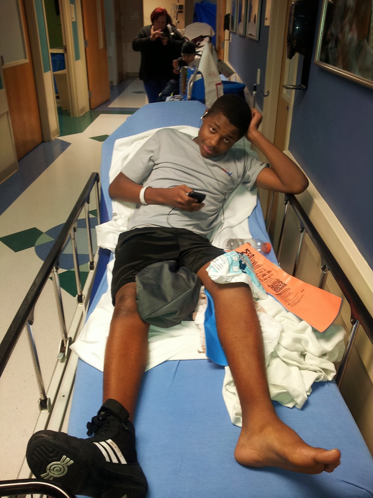 Jordan decided to join the wrestling team at his high school this year. I think his interest built from his new love for Jujitsu. It has been fun watching him embrace a new sport. I have been impressed with the amount of practice hours and conditioning he has put into developing the skills of a wrestler. Along with the joy of a new sport my poor Jordan has recently experienced the pain. During one of the teams practice sessions Jordan was attempting to get out of a hold one of his teammates had locked him in. During the process his left knee cap was dislocated. Seeing his knee sitting in the wrong location of his leg was quite disturbing but it was nothing compared to watching the ER doc snap it back into place. The worst hurt in the world is to see my child in pain. He is recovering well (and rather grudgingly) with doctor ordered rest, brace and crutches.